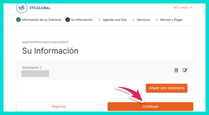 Luego, dentro de la misma pestaña, les va a figurar la opción de “Añadir otro solicitante”, es decir otra persona que puede sacar turno junto a ustedes, ya sea un amigo, familiar o conocido que también quiera aplicar.