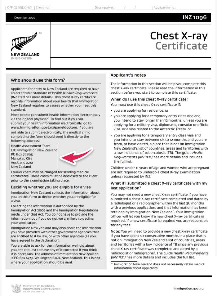 Una vez que tienen el informe listo, el médico o radiólogo debe rellenar el Formulario INZ 1096 de Rayos X.