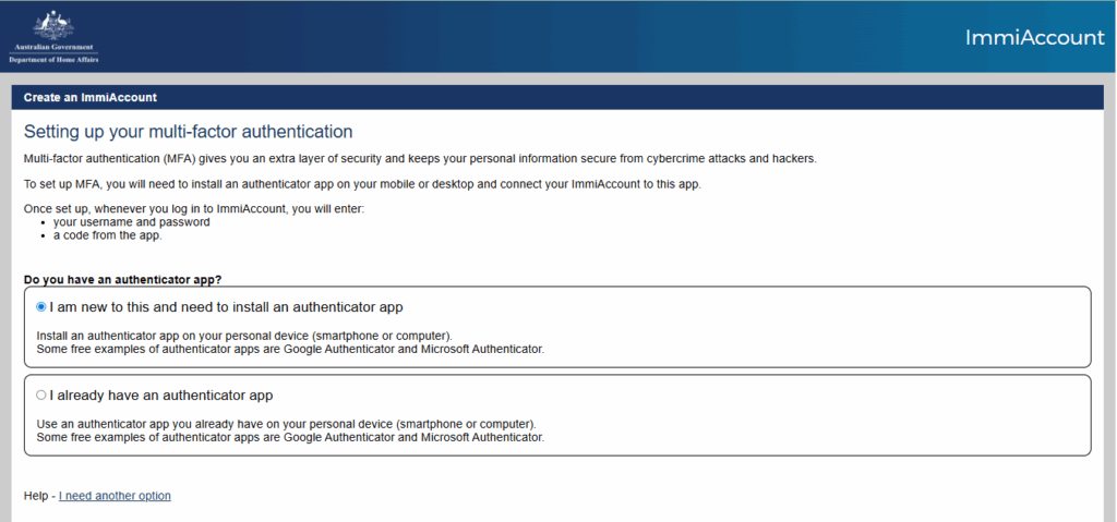 Una vez que se registren o ingresen a su cuenta ya creada, Immi Account les pedirá la autenticación.